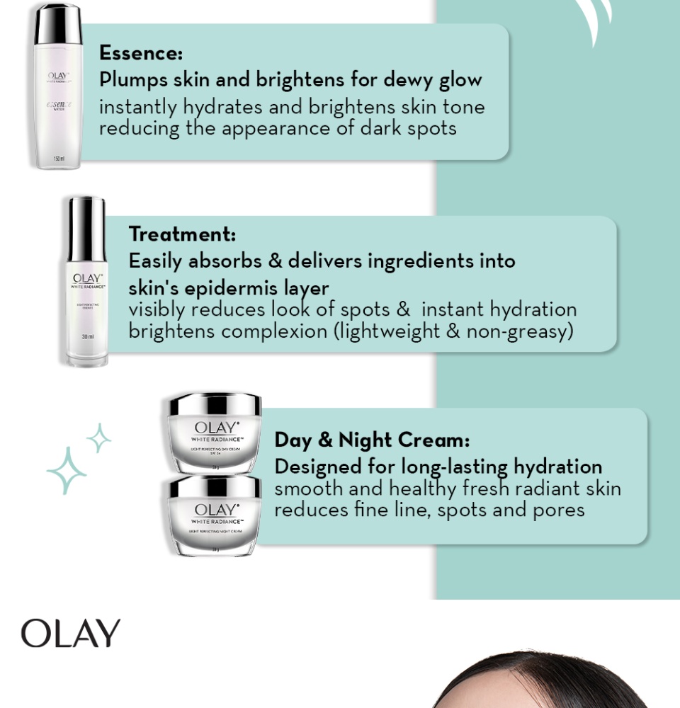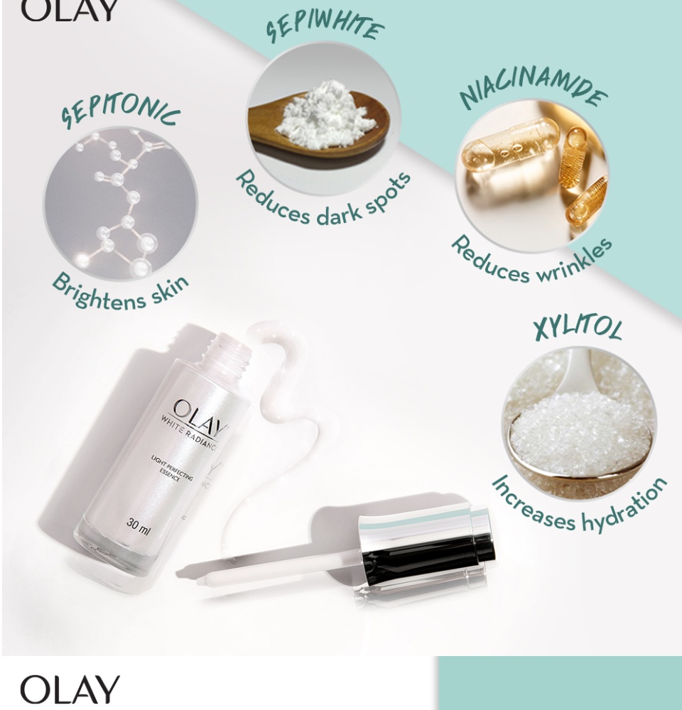 • Olay’s specially designed dropper mechanism enables targeting problem areas.