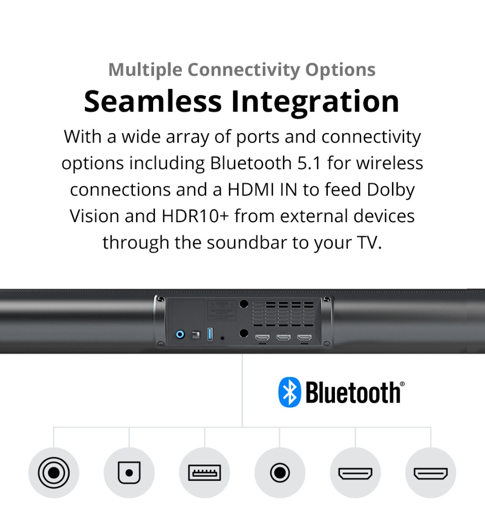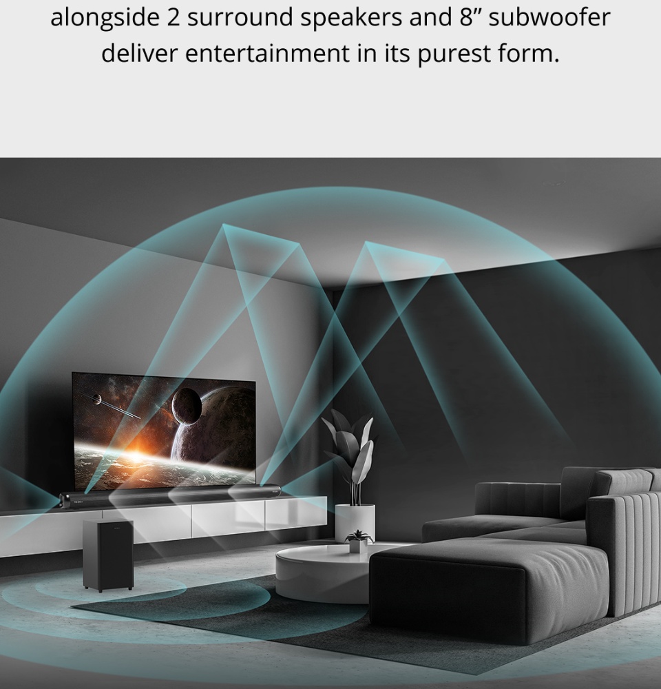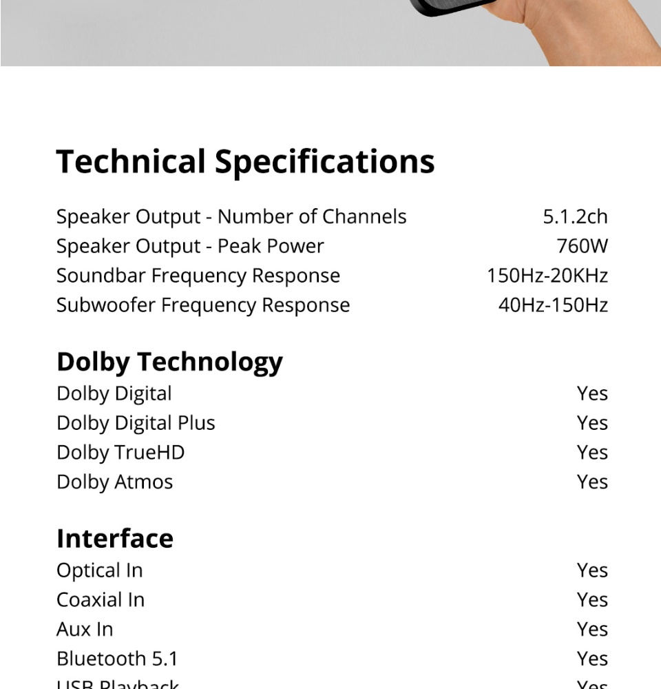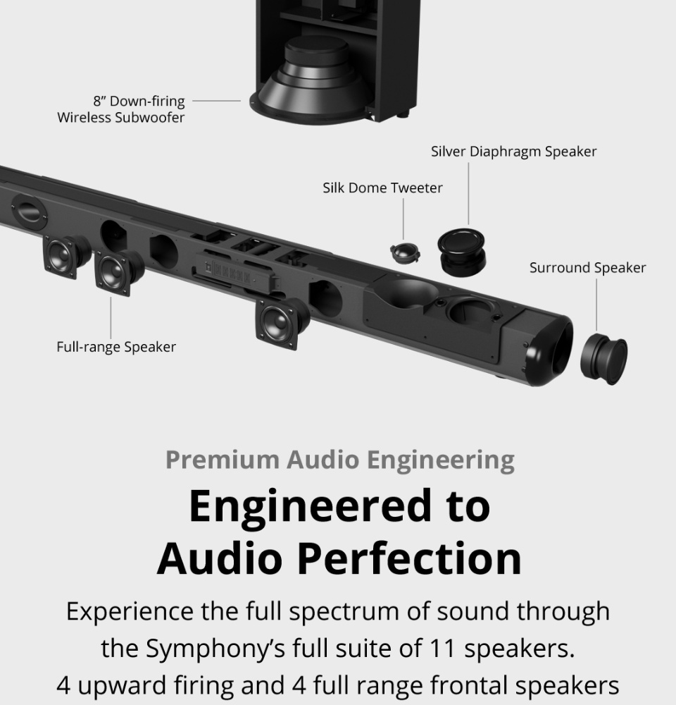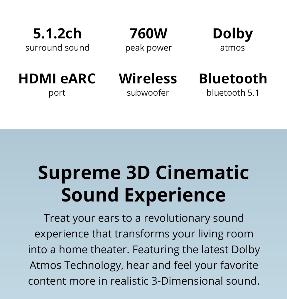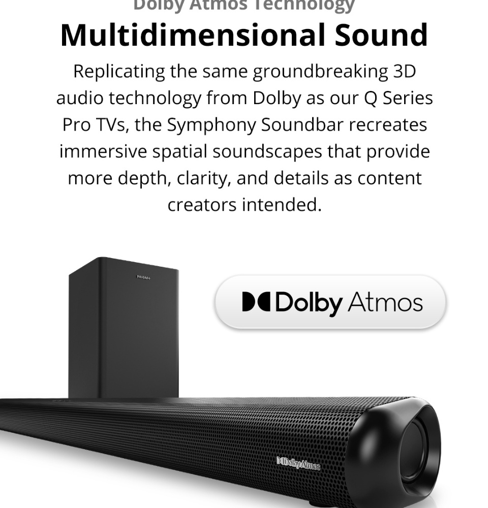 PRISM+Symphony 5.1.2ch带杜比全景声的条形音箱|760W|无线低音炮|无线音乐流|蓝牙5.0